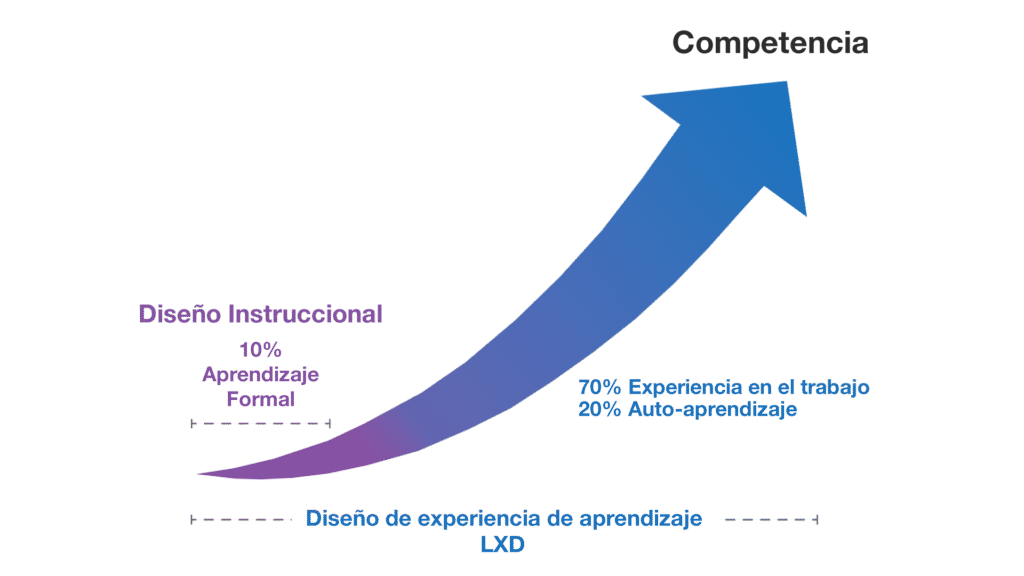 Según estudios sobre aprendizaje, solo el 10% de una competencia se adquiere a través de la instrucción formal. El 90% restante proviene de la práctica y la experiencia directa.